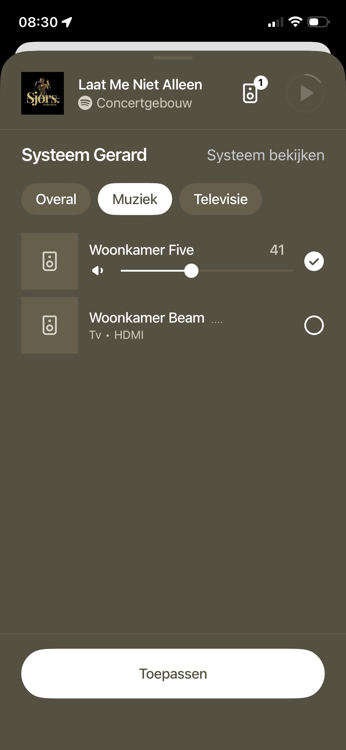 Ik krijg wel plotseling een menu met de keuzes: overal - muziek - televisie