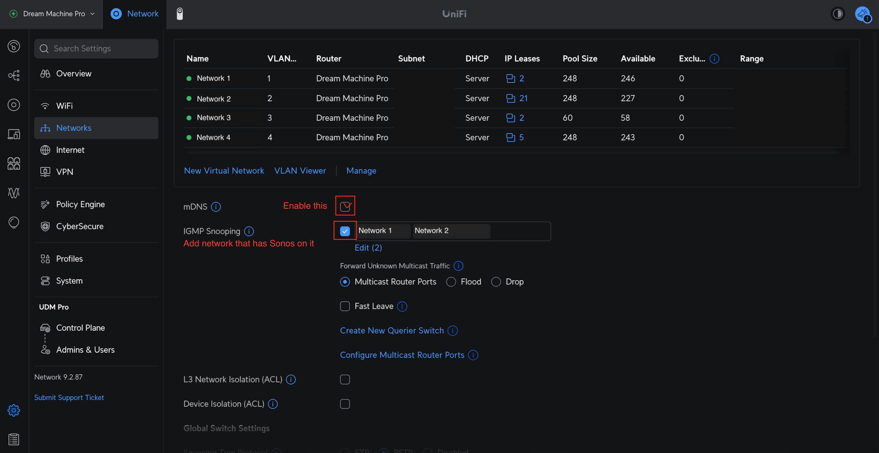 - Opmerking: Hoewel dit klinkt als iets wat je aan wilt hebben, zet het multicast om naar unicast, wat problemen kan geven bij het groeperen van Sonos.