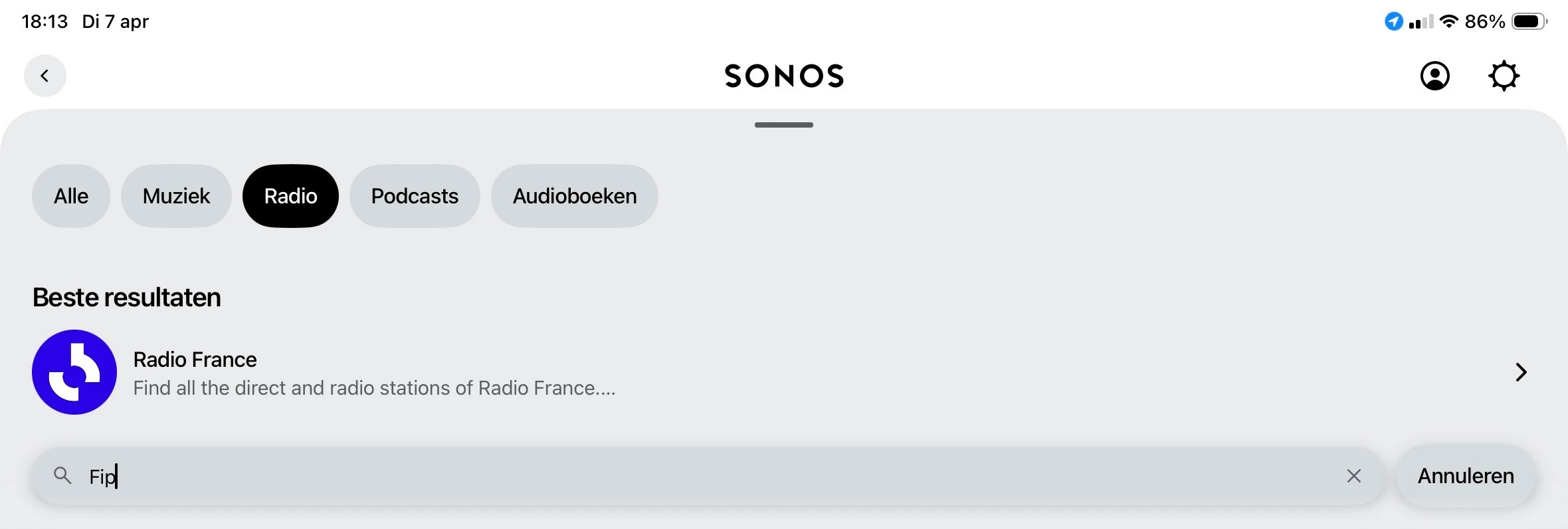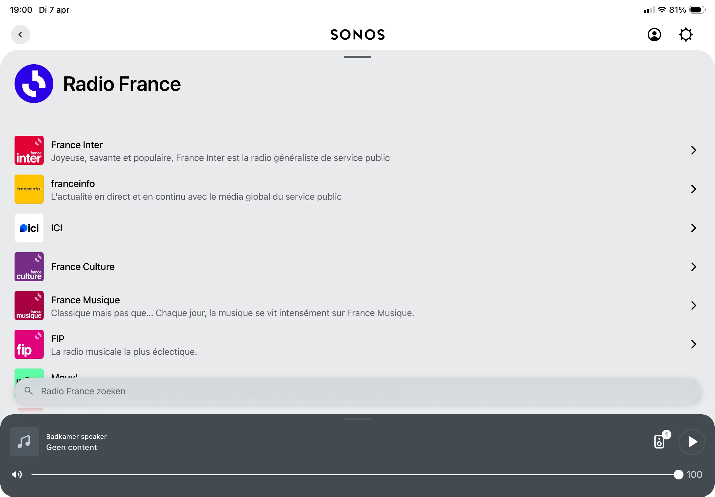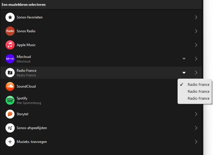 Daarop heb ik de service verwijderd en wilde die opnieuw toevoegen...echter met gevolg dat ik de Radio France niet meer kan toevoegen en nu FIP helemaal niet meer kan afspelen.
