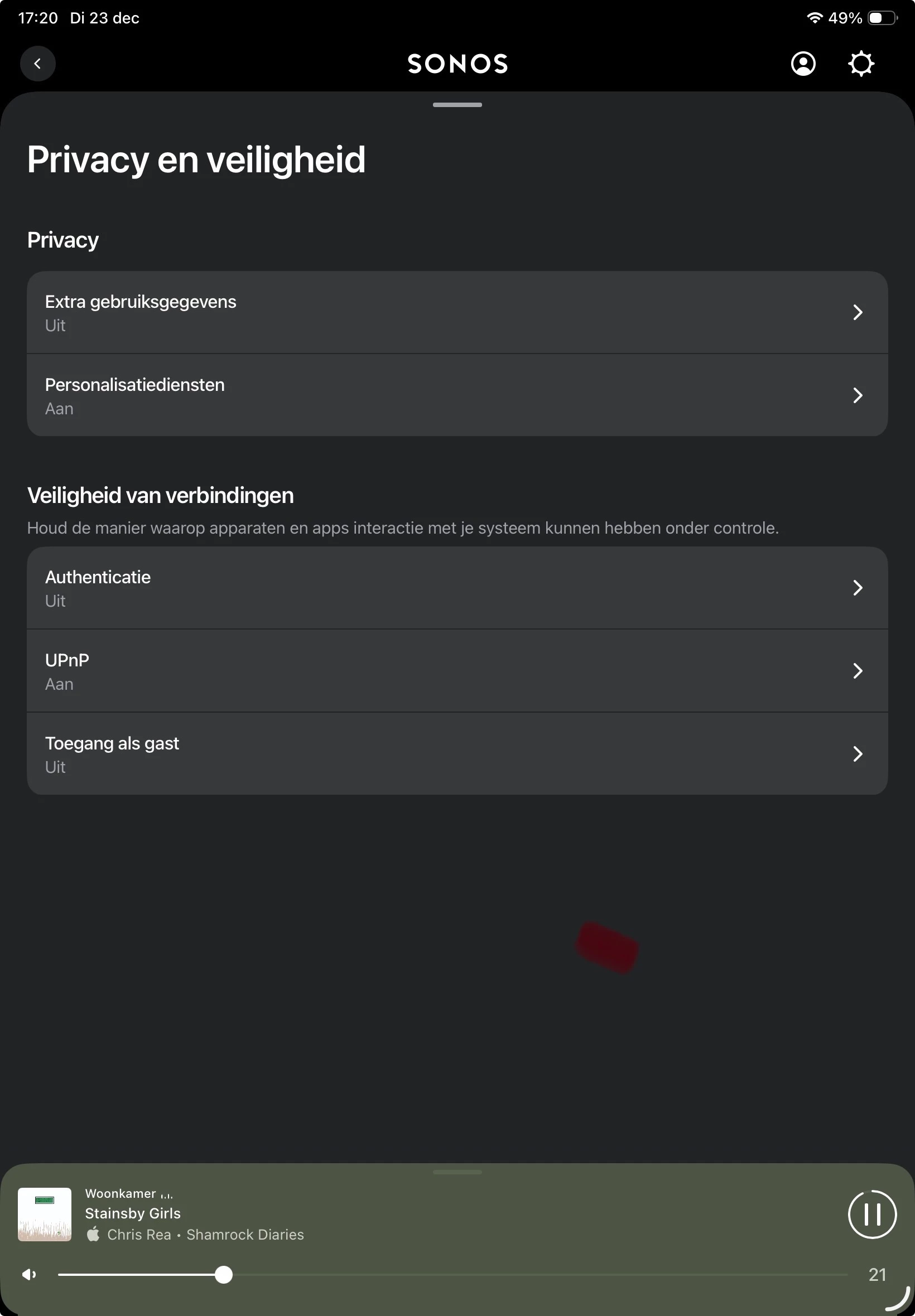 De brug met Sonos is nog wel aanwezig maar ik moet eerst de Sonos app configureren. Maar wat ik moet configureren in de Sonos app wordt niet vermeld.