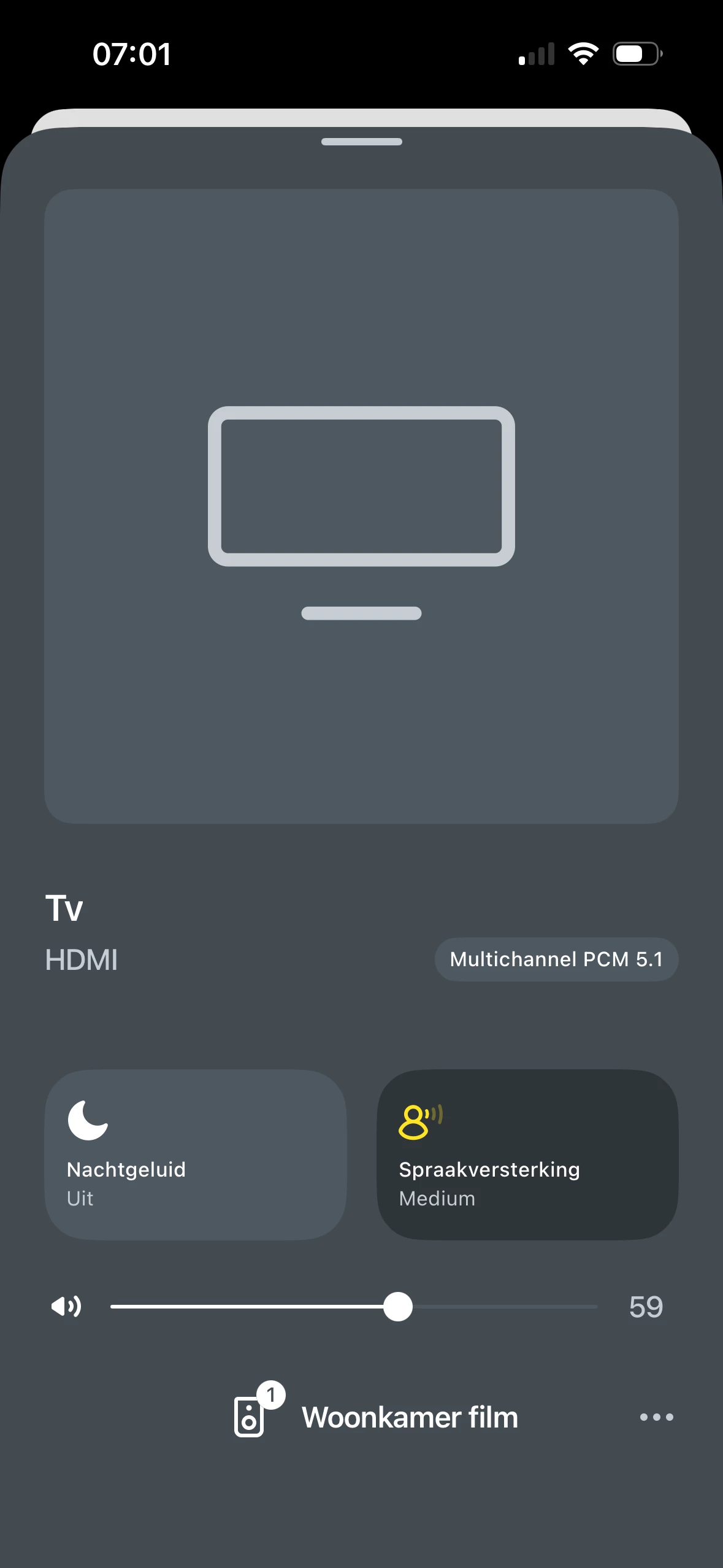 Kamer 2 werkt naar behoren in combinatie met Spotify en Apple music. Maar als ik een film wil kijken via Netflix, Videoland of wat dan ook, dan gebruik ik kamer 1 en die werkte ook naar behoren, tot 5 dagen geleden.