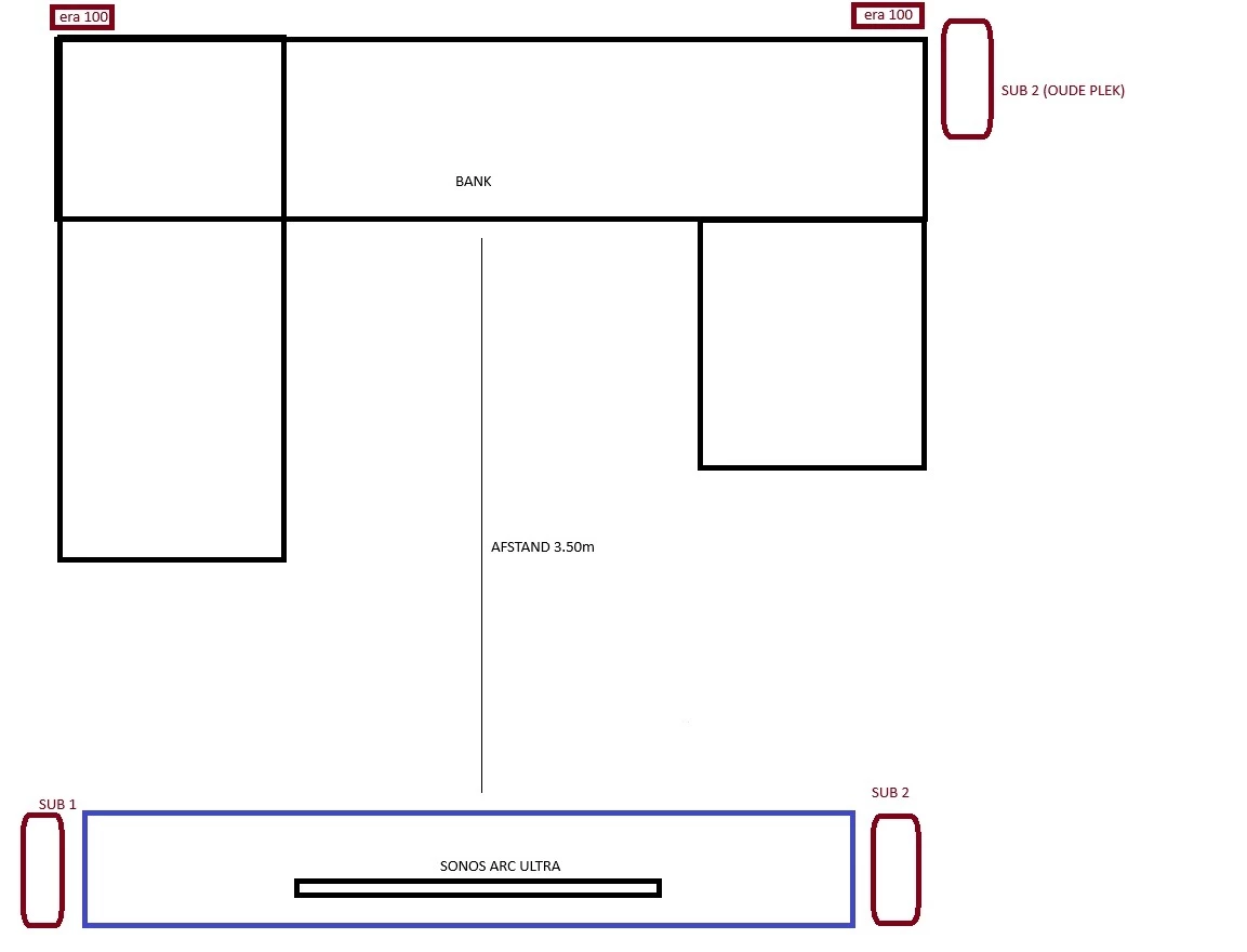 Afijn, dus nu Arc Ultra + 2x Sub gen 4 en 2x Era 100 als surround.